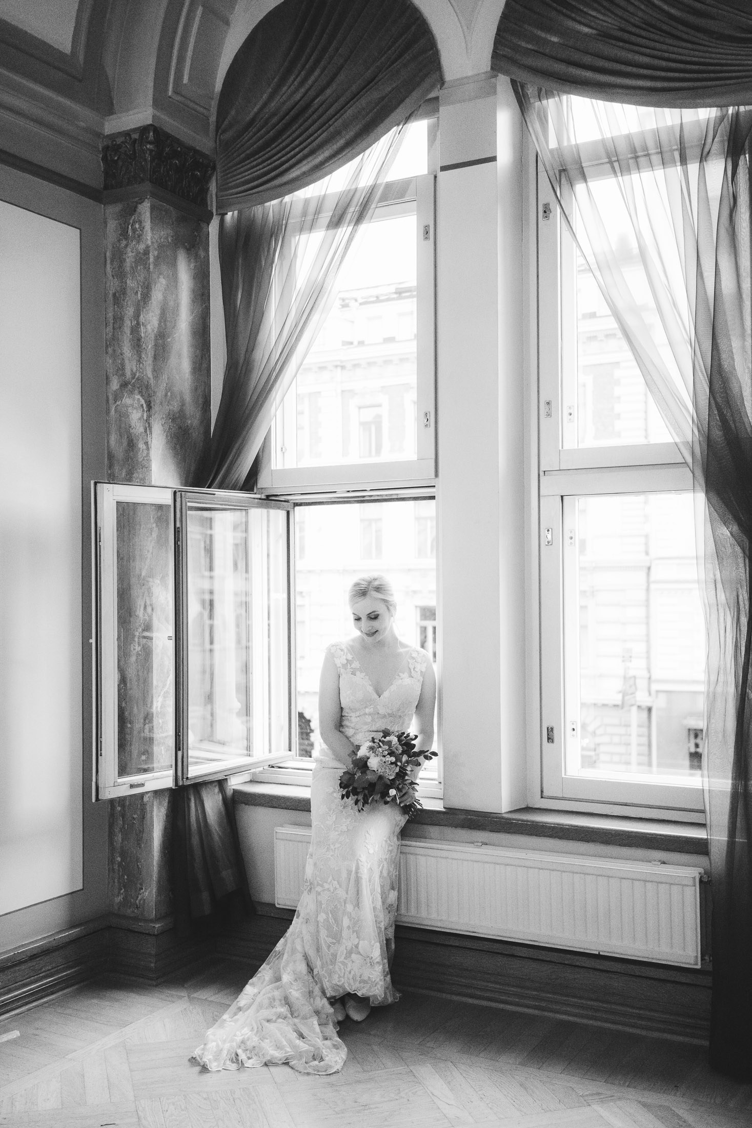 Hääkuvat helsingin keskustassa ja vihkiminen Helsingin vanhassa kirkossa.