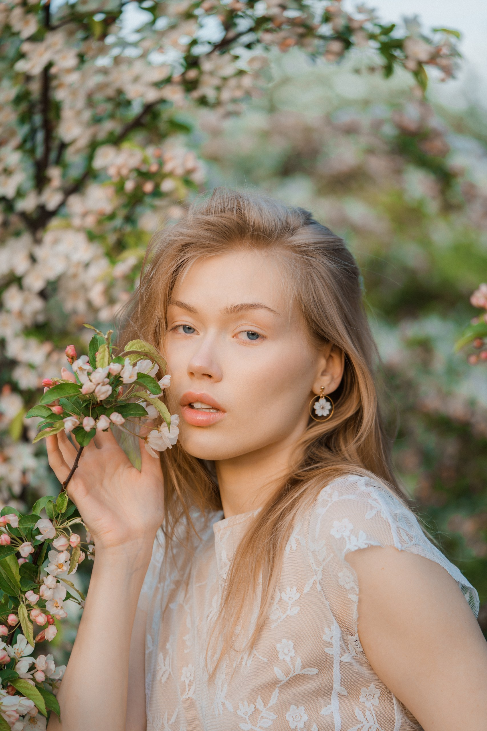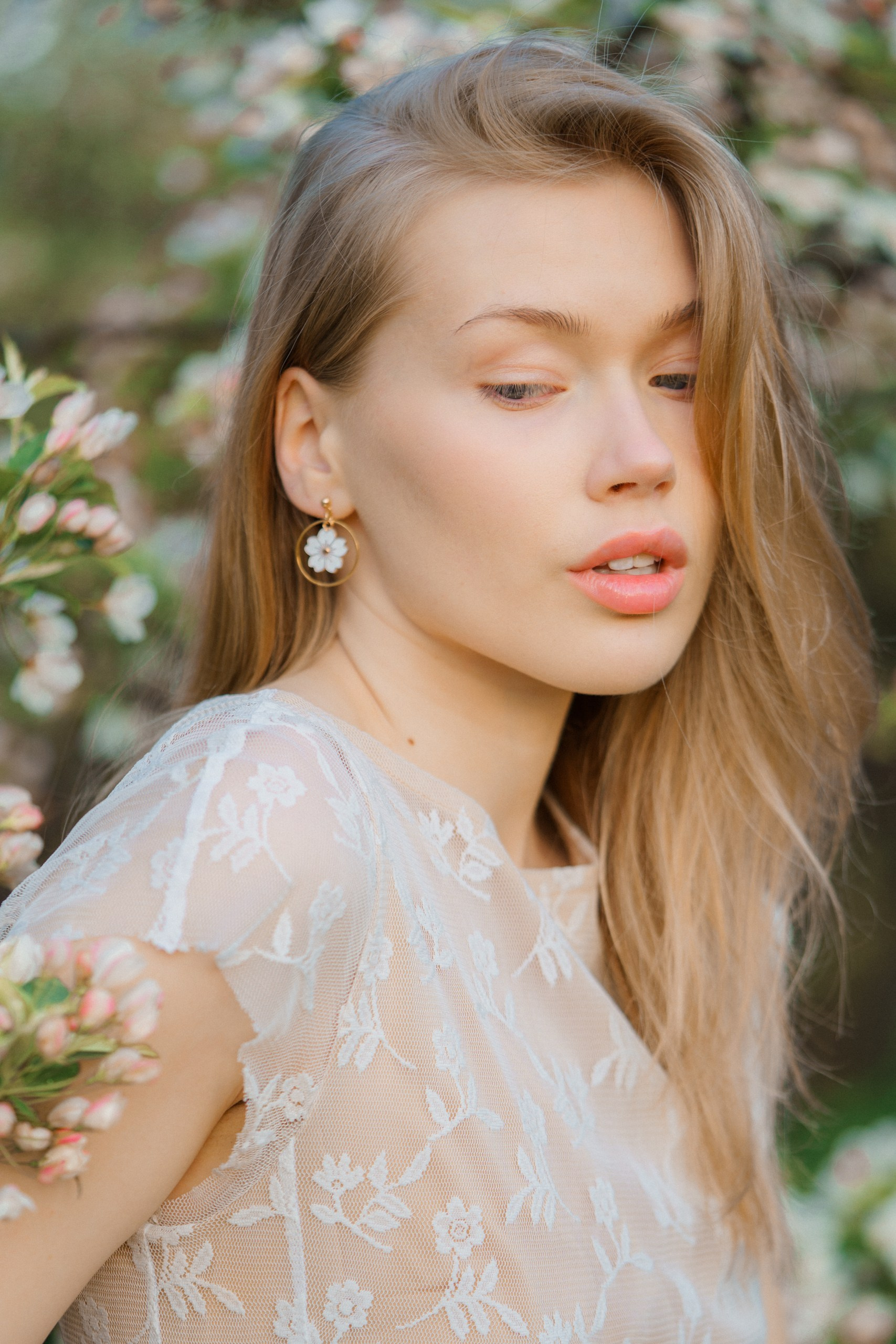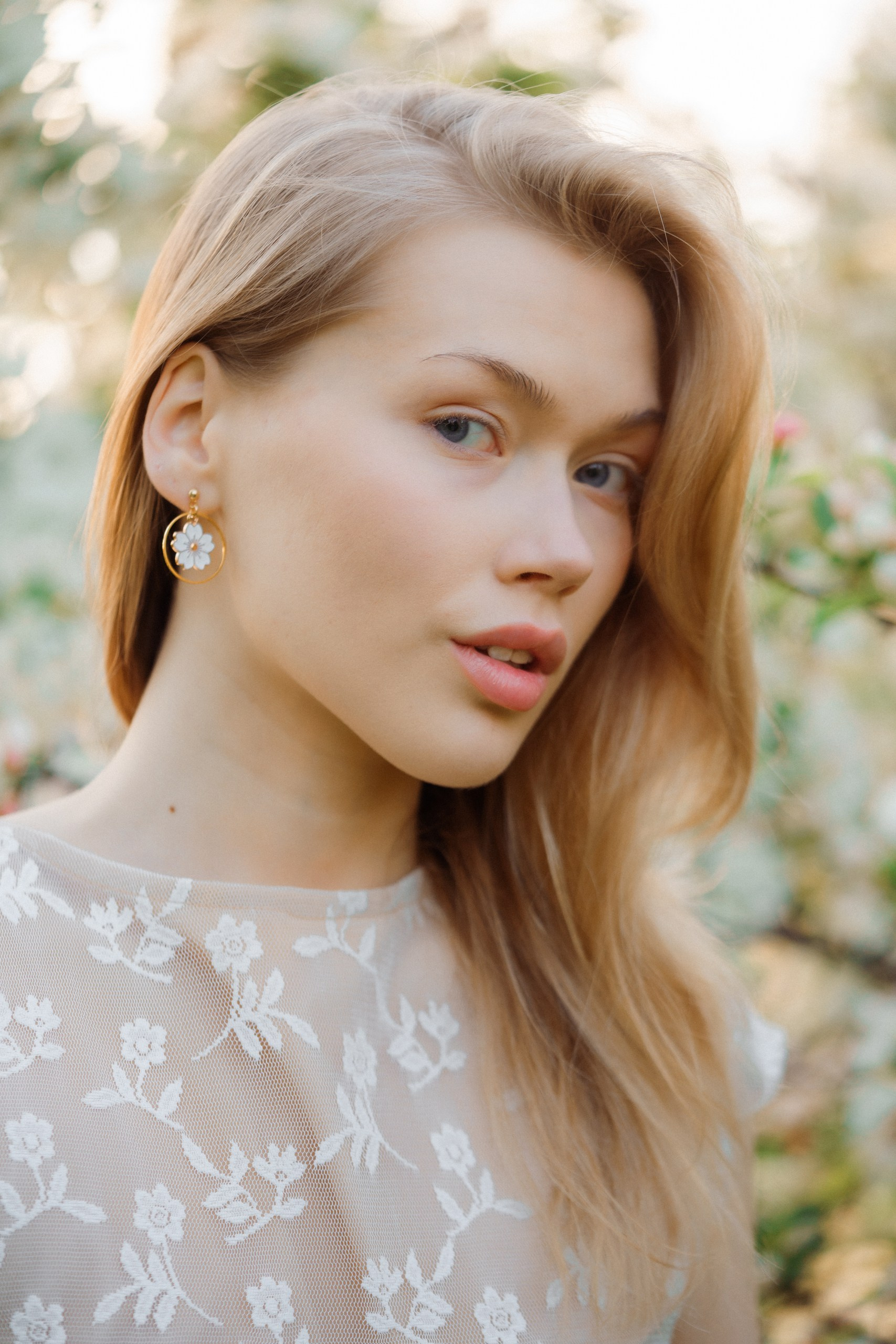 Päätimme toteuttaa brändikuvauksen kukkivien omenapuiden keskellä, hyödyntäen iltaisen auringonlaskun kultaista valoa. Tuotekuvauksessa valaistus on kaikki kaikessa, ja luonnonvalo tarjoaa siihen parhaan mahdollisen pohjan. Iltaauringon pehmeät säteet loivat täydellisen, lämpimän tunnelman, joka toi esiin korujen yksityiskohdat kauniisti.