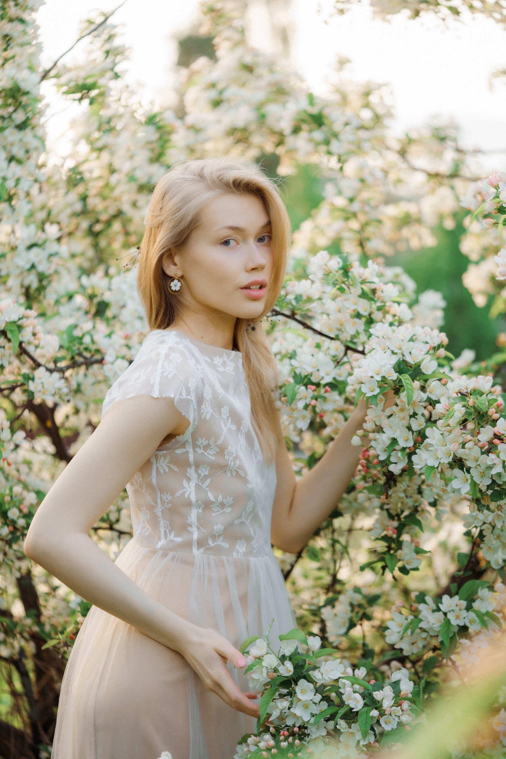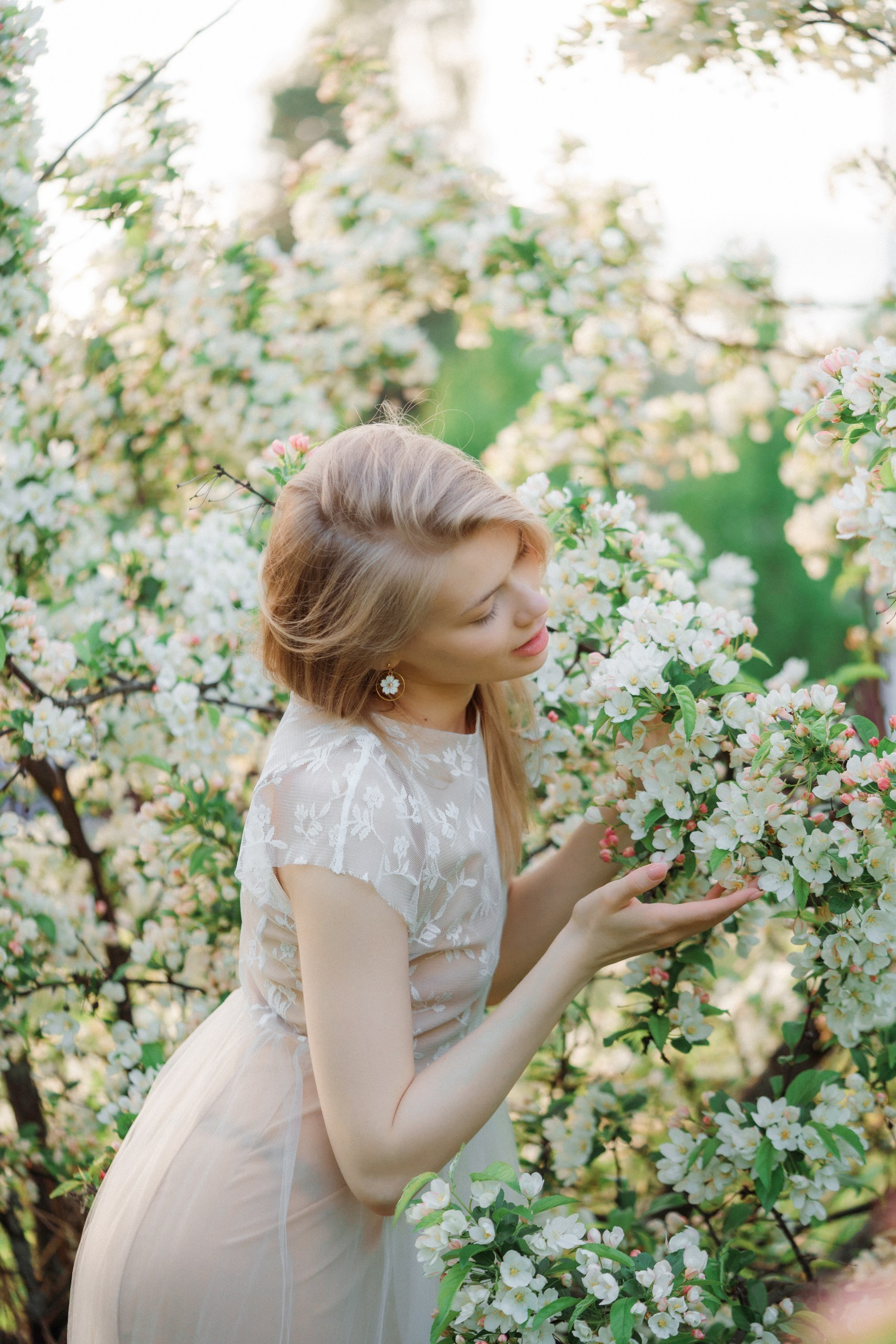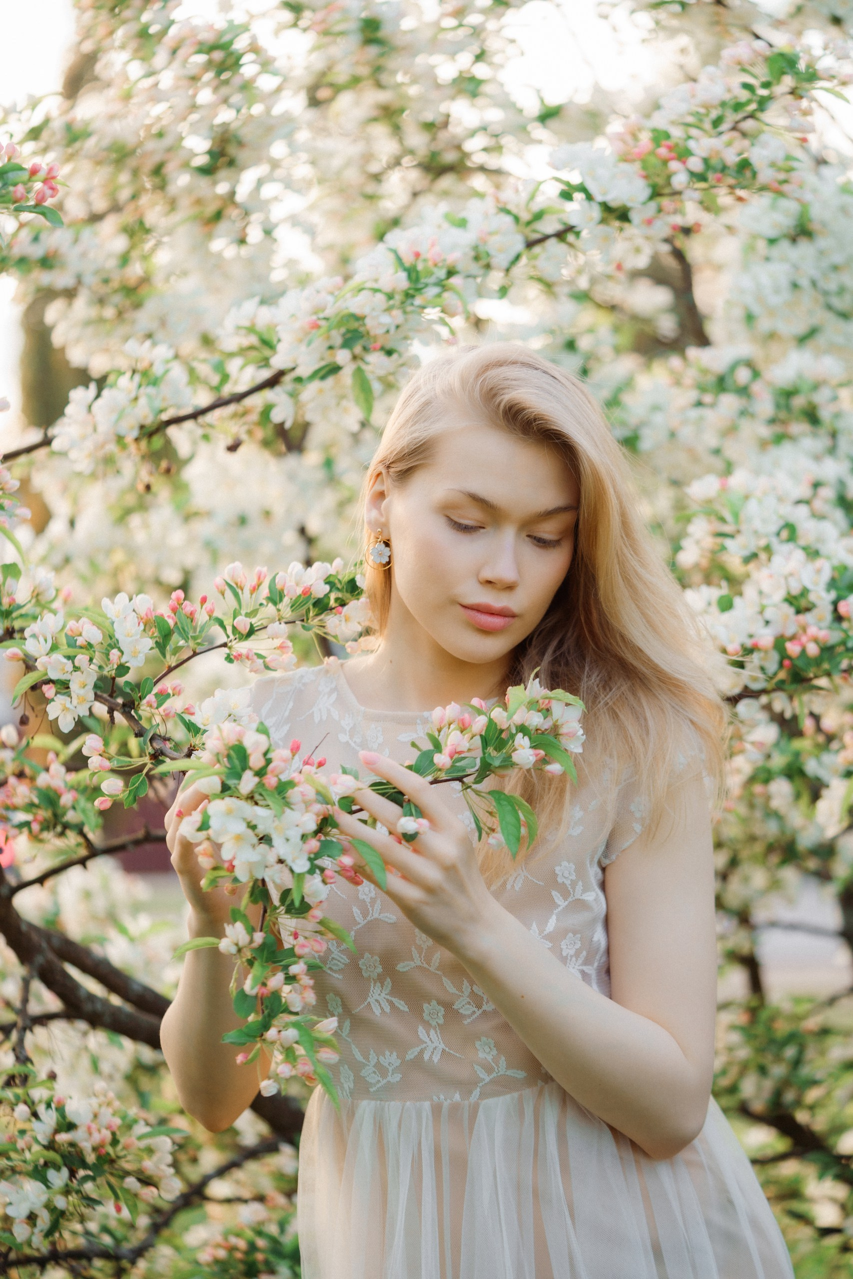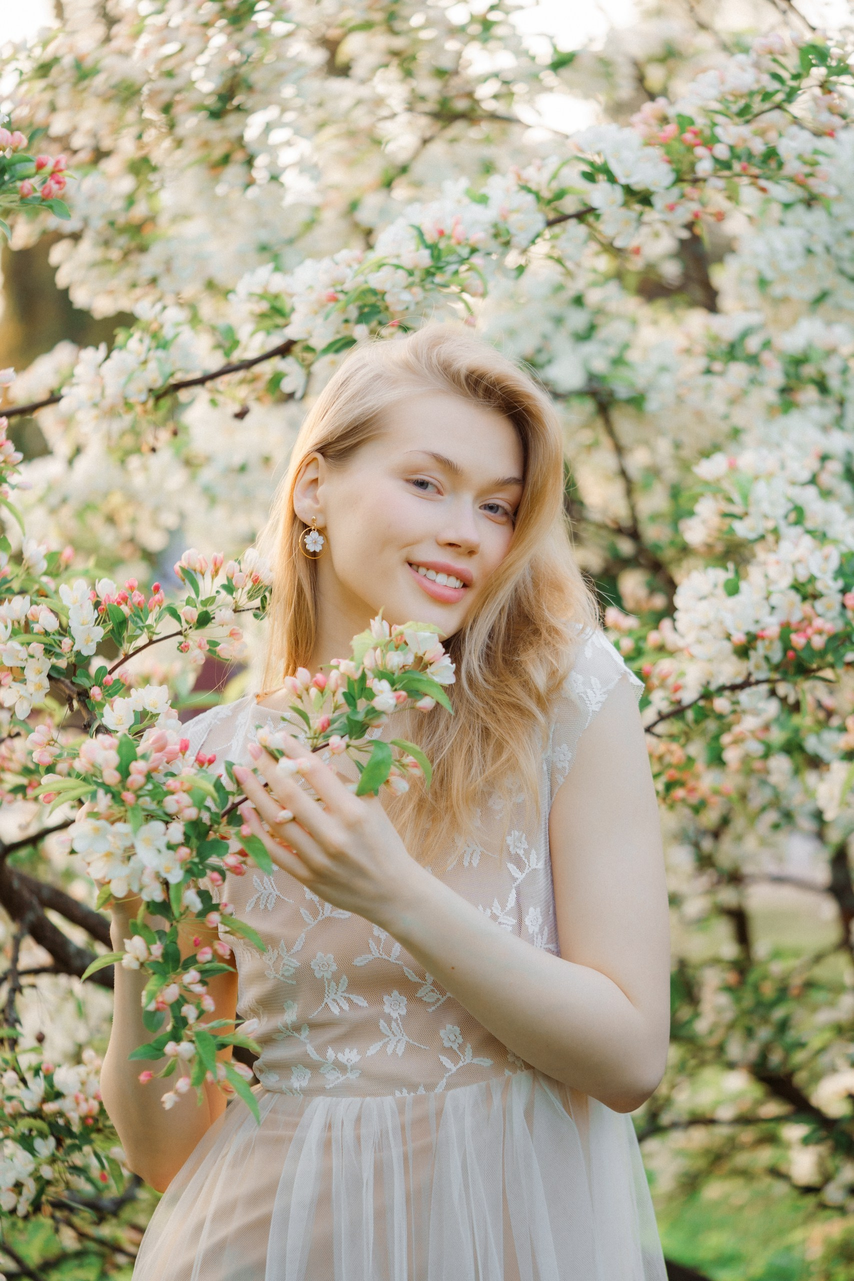 Hyvä brändikuvaus ei ole pelkästään tuotteen kuvaamista, se kertoo tarinan ja luo tunnelman. Tässä kuvauksessa halusin yhdistää Sinnakorun korujen hienostuneisuuden kevyen, kesäisen estetiikan kanssa. Valkoiset omenankukat toimivat täydellisenä taustana, luoden romanttisen ja satumaisen tunnelman, joka sopii brändille erinomaisesti. Erityisen kiehtovaa oli se, että kuvattavana oli kaksi erilaista korumallia: kauniit helmet simpukankuoren muotoisilla riipuksilla ja toinen upea omenankukan muotoinen koru. Kukkivien omenapuiden ympäristö loi täydellisen yhteyden omenankukka-korun kanssa. Muotoilu ja luonto kohtasivat harmonisesti.