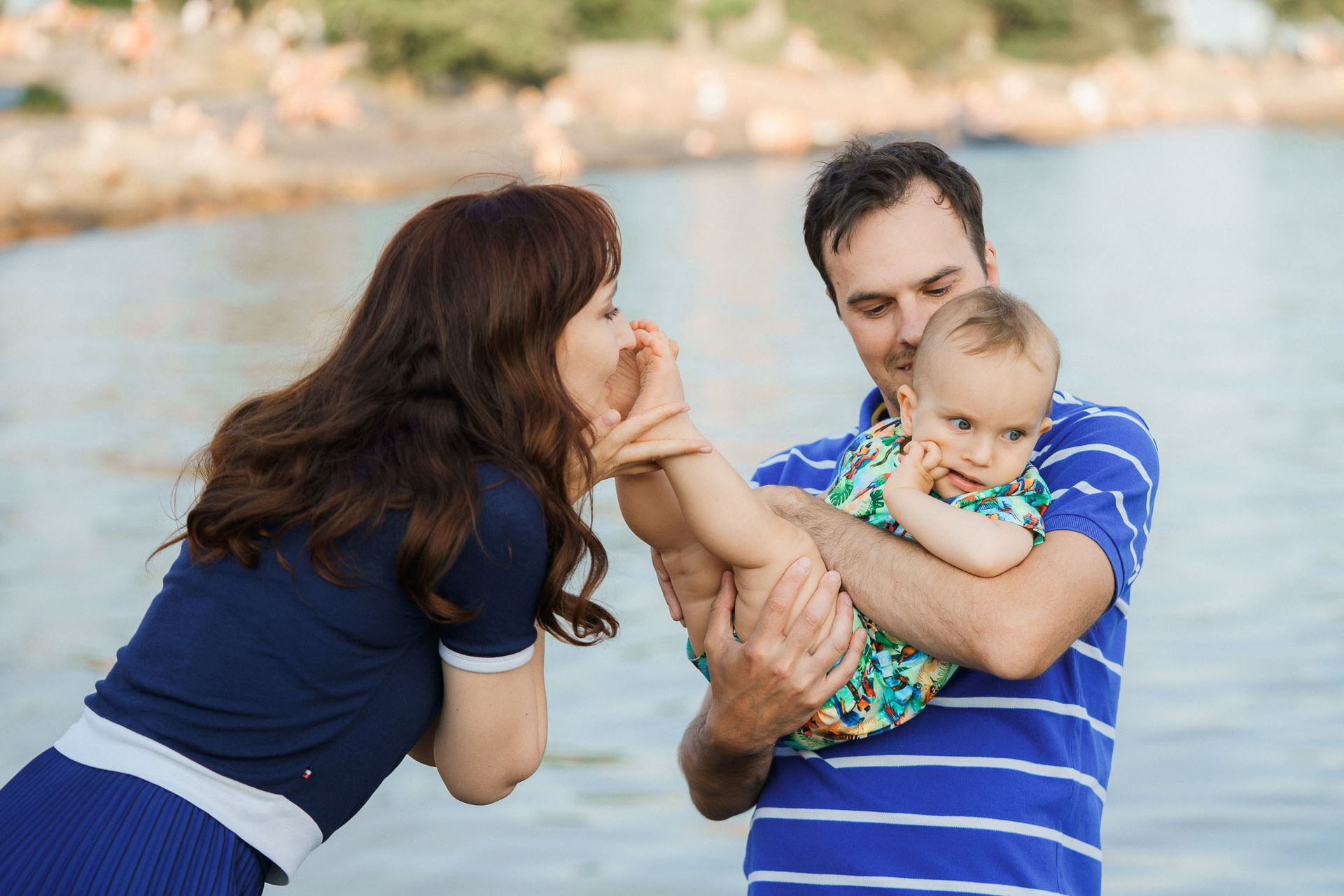 Kesäinen perhekuvaus meren rannalla