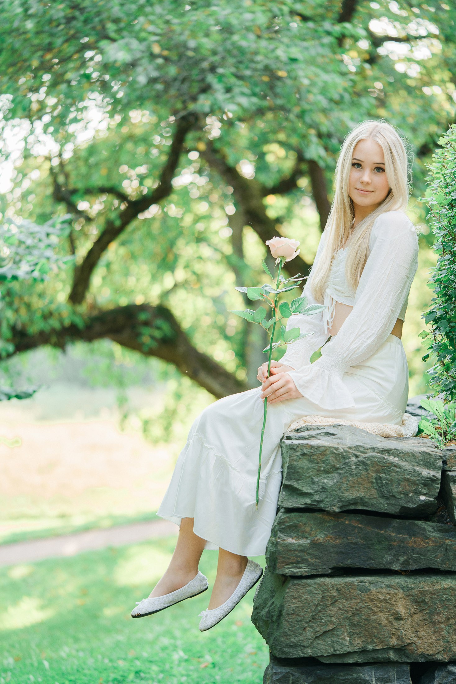 Tuomarinkylän kartanon alue on miljöökuvaajan unelma, sillä se tarjoaa valtavasti kaunista ja vaihtelevaa taustaa aivan lyhyen kävelymatkan sisällä. Tämän upean nuoren naisen rippikuvauksessa halusimme hyödyntää alueen koko kauneuden, ja ilta-auringon kultainen valo teki lopputuloksesta suorastaan taianomaisen.