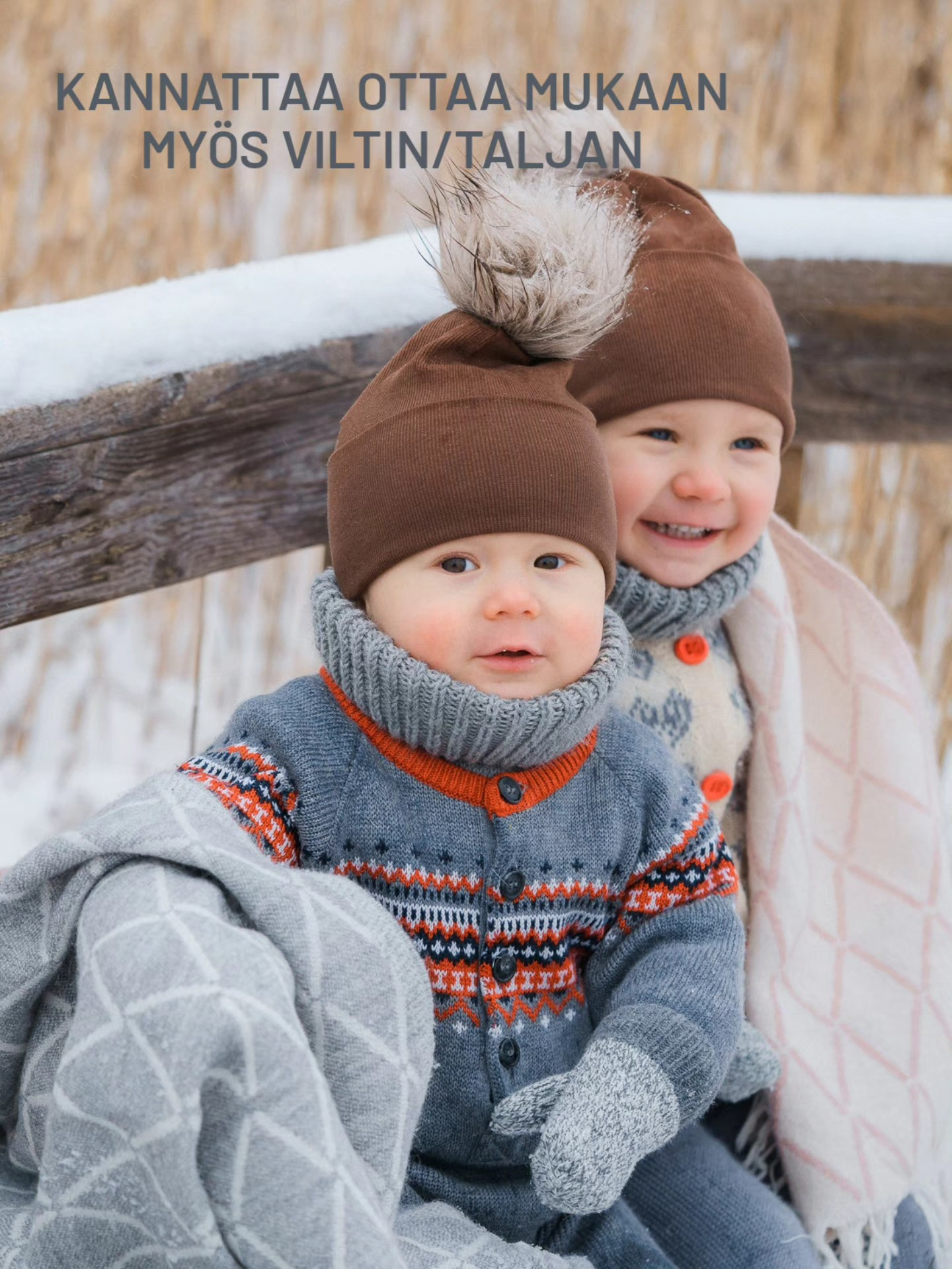 Pue lapsille useampi ohut kerros yhden paksun sijaan. Pue villakerrasto, fleecepuku neuleen tai villatakin alle.