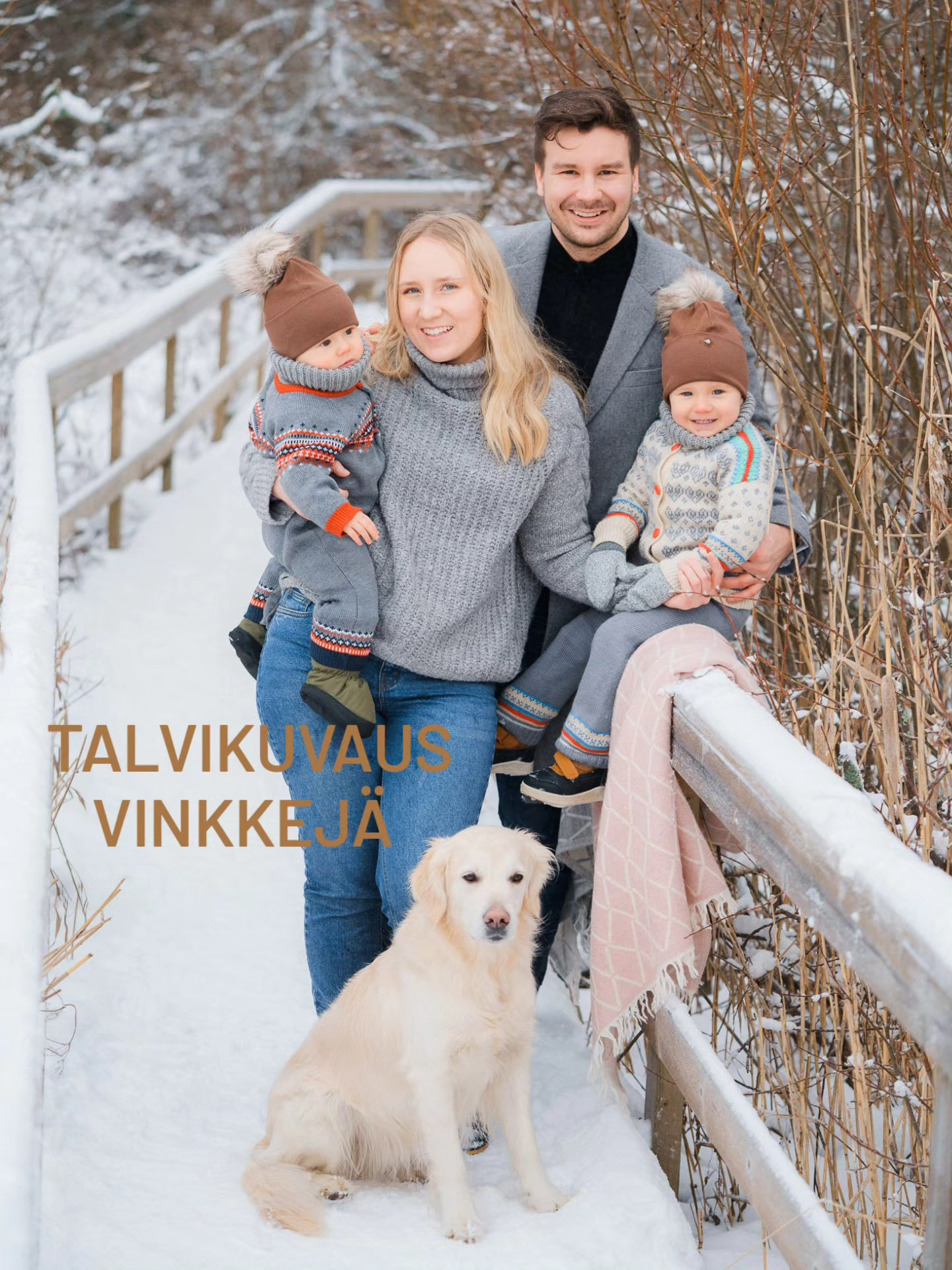 Talvella lasten keskittymiskyky on lyhyempi, joten kuvauksen aikana me liikutaan paljon ja leikitään lasten kanssa, niin ei taatusti tule kylmä. Tärkein asia on pitää hauskaa yhdessä. Saadaan ihanat kuvat, kun kaikki nauttivat hetkestä!